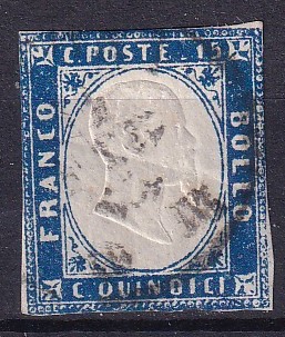 Regno d’Italia 1863 – Effigie Vittorio Emanuele II valore 15 centesimi indaco usato
