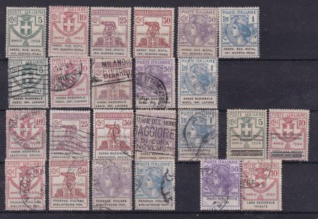 Regno d’Italia 1924 – Lotto pubblicitari ed enti parastatali, nuovi e usati. Valore di catalogo oltre 5,000 euro.